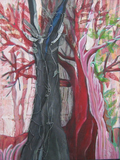 Ik ben twee jaar lang betoverd geweest door bomen. In alle kleuren, maten en vormen. Nog steeds, als ik even niet weet hoe te beginnen, dan verschijnt er gewoon weer een boom op het doek. Heerlijk om te schilderen en je uit te leven met kleuren.